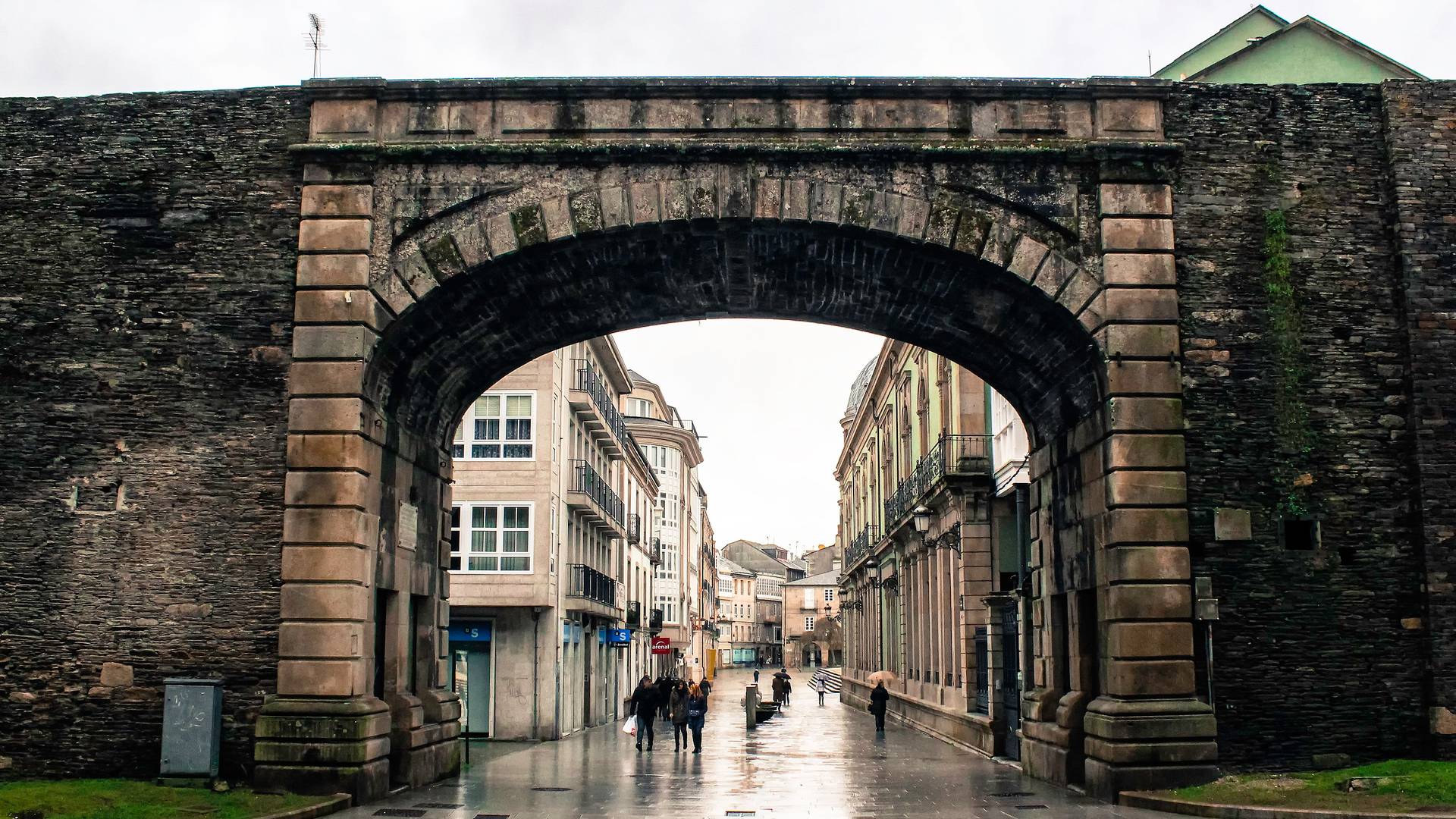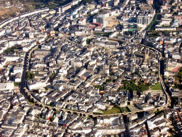 Lugo is a small city in Galicia, a region on the Atlantic coast in northwestern Spain. It was conquered in 13 BC and renamed Lucus Augusti by Paullus Fabius Maximus. Iberia had taken a long time to conquer, and so Lucus Augusti became a vital outpost for the Roman Empire; in the 2nd century AD a monumental circuit of walls was build around the town. They were over two kilometres in length, up to seventeen metres high in places, and featured over eighty towers. What's remarkable is that, nearly two thousand years later, these ancient walls are still standing. In fact, Lugo is the only city in the world to have a fully intact set of Roman walls.