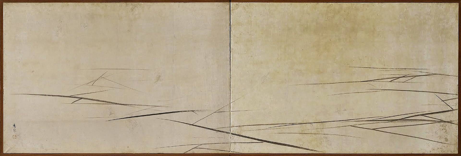 How remarkable that a few scattered lines can conjure up the image of a frozen lake, and even colourless can draw us to picture the heavy frosts of deepest winter. The human imagination is terrifyingly powerful; Cracked Ice is evidence of that. For despite its simplicity I find this painting utterly engrossing. Ōkyo's reduction of a natural scene to its most basic elements, to its fundamental essence, is typical of Chinese and Japanese landscape art. In this way it's more like poetry than art, more like a harmonic meditation than a representation of reality.